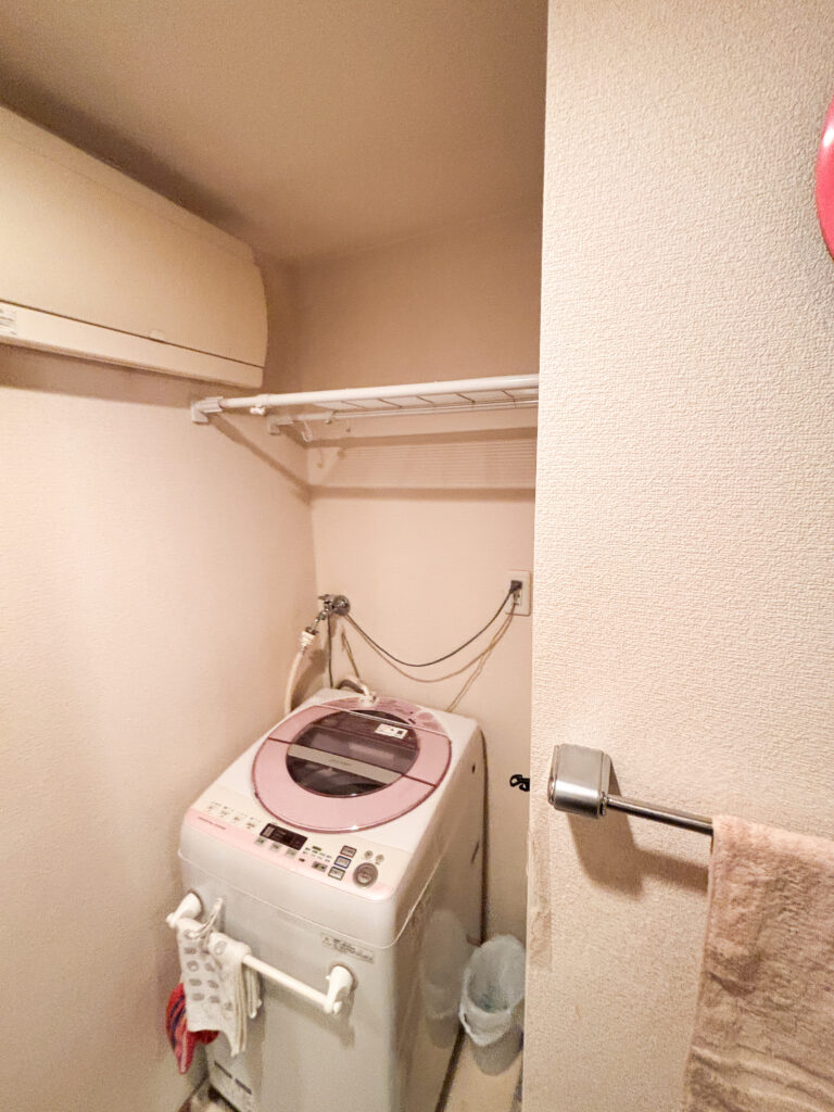 また洗濯機置き場の上には、今までの突っ張り棒収納ではなく、